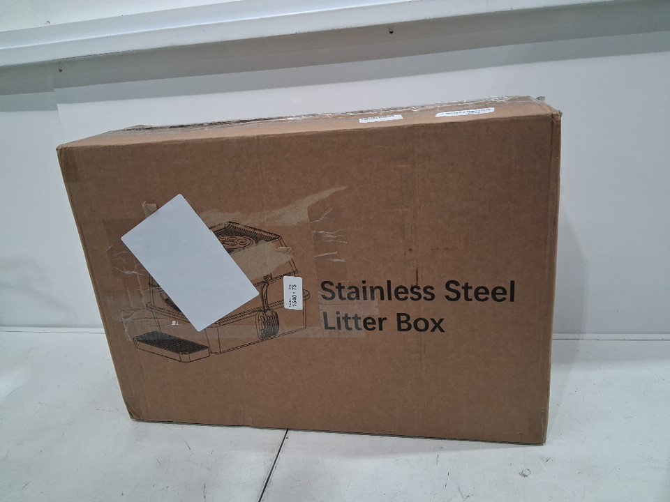 Citylife Stainless Steel Litter Box with Lid Flip-Top, LITTER Mat Step AND Litter Scoop- EXTRA LARGE- BLACK
