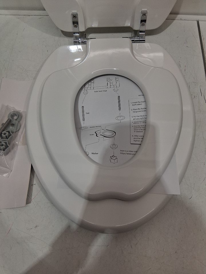 Topseat TinyHiney Elongated 2-IN-1 KIDS AND ADULT SEAT - WHITE /SILVER (MODEL:‎6TSTE9999CP 000)