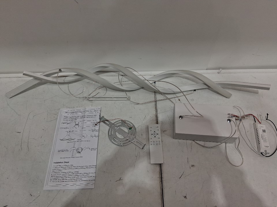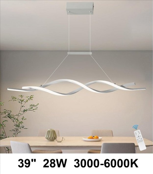 JAYCOMEY MODERN PENDANT LIGHT, LED WAVE SHAPE CHANDELIER with remote - white - (model: sfm-19009-100-white-wj) 39" - 28w - 3000-6000k -