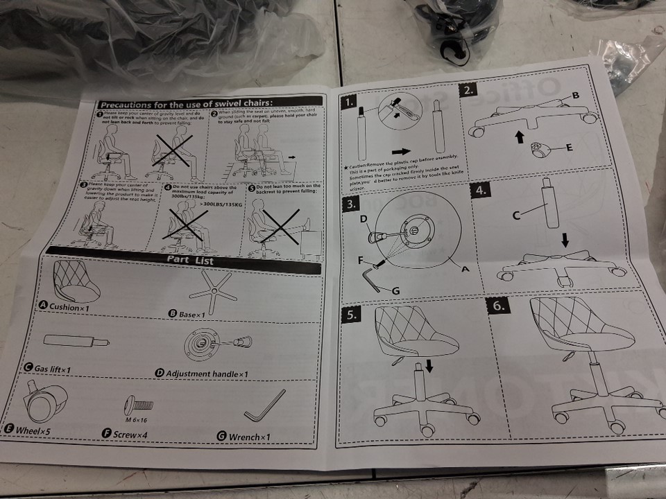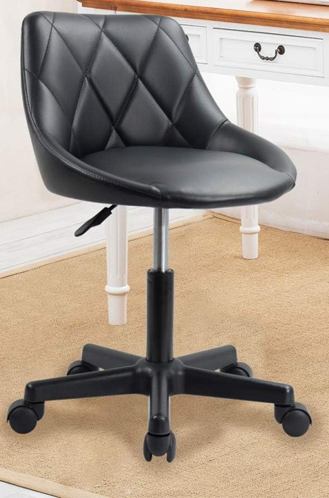 KKTONER Modern Mid Back PU Leather Height Adjustable Stool - BLACK (MODEL: BOC1001)