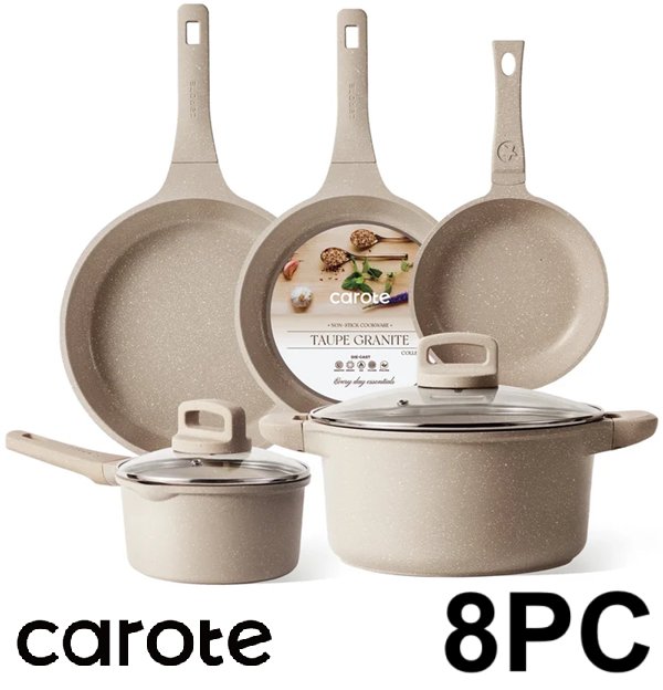 8PC Carote Nonstick Induction Compatible Cookware Set - Taupe Granite