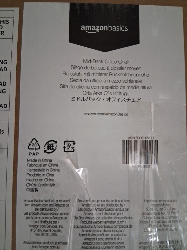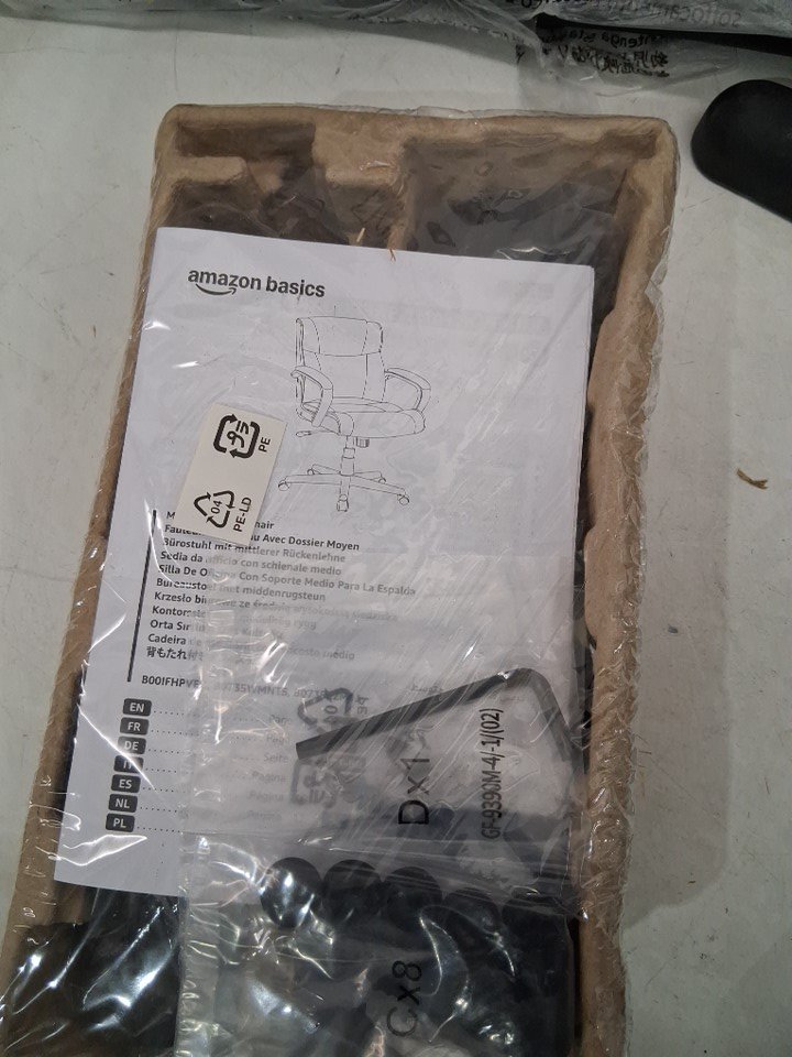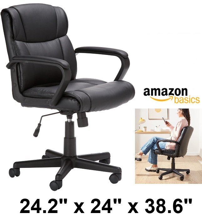 Amazon Basics Classic Faux Leather-Padded Mid-Back Office Desk Chair with Armrest -24.2" x 24" x 38.6"- Black (model:HL-002566)