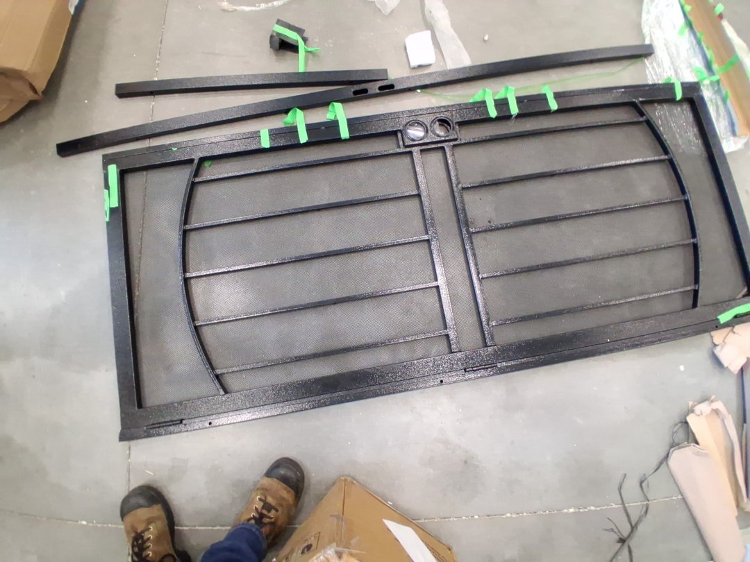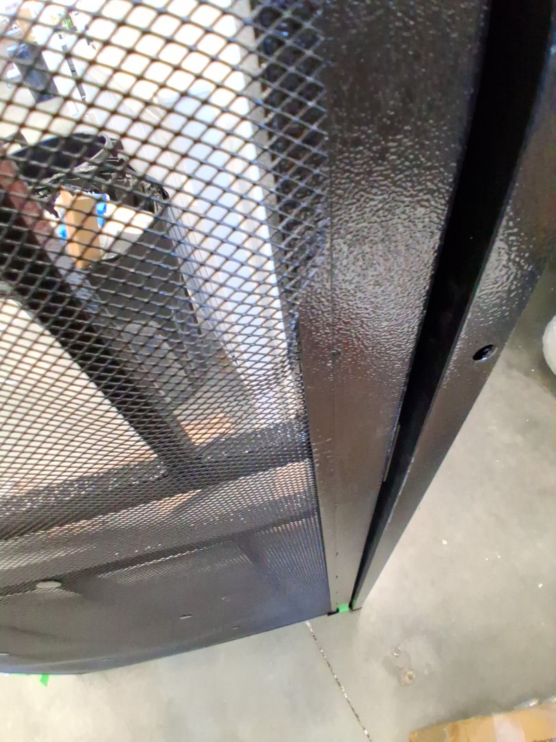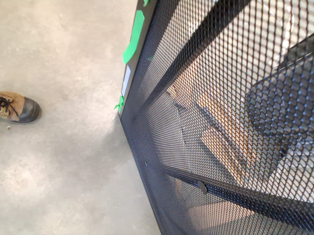 mesh is distressed and pulled in areas, scratches on metal parts