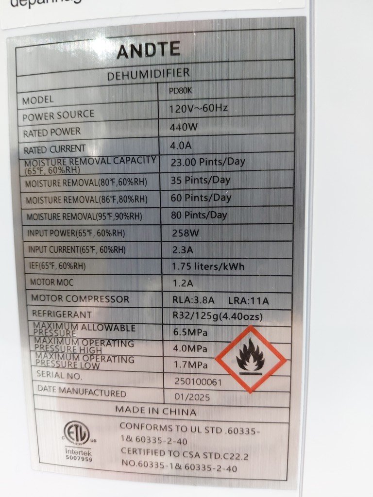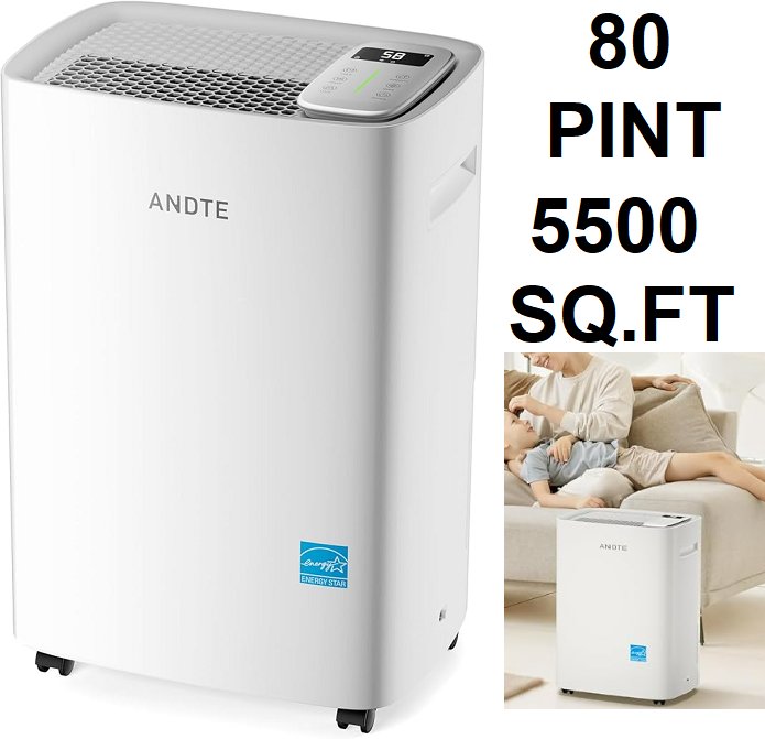 andte Smart Humidity Control touch control Dehumidifier - 5500 sq.ft - 80 pint - white (model: pd80k)