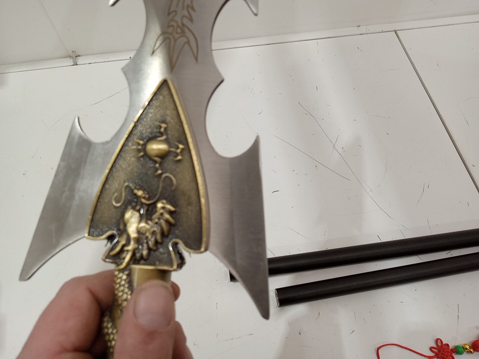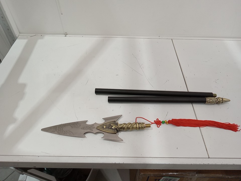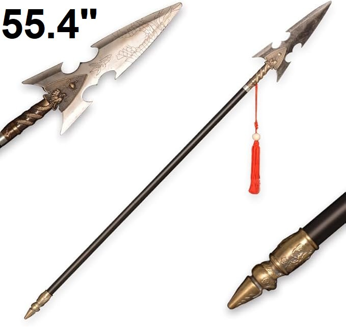 actasitems traditional Chinese metal spear cosplay prop - 55.4" - blade length 11.5" - stainless steel/black