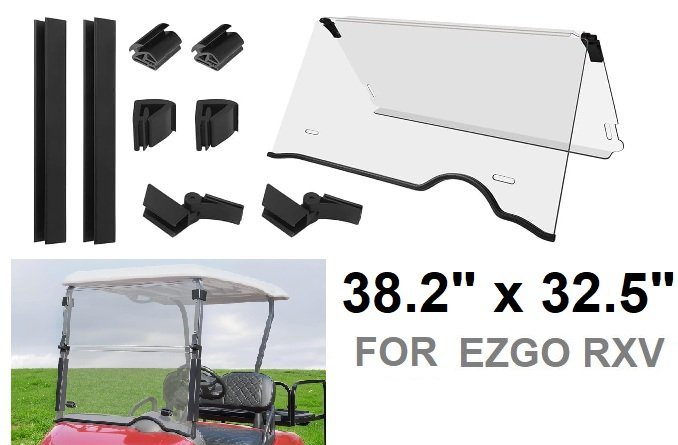 10L0L Upgrade Thickened Fold Down Anti-UV Impact Resistant GOLF CART WINDSHIELD FOR EZGO RXV 2008 and up - tinted