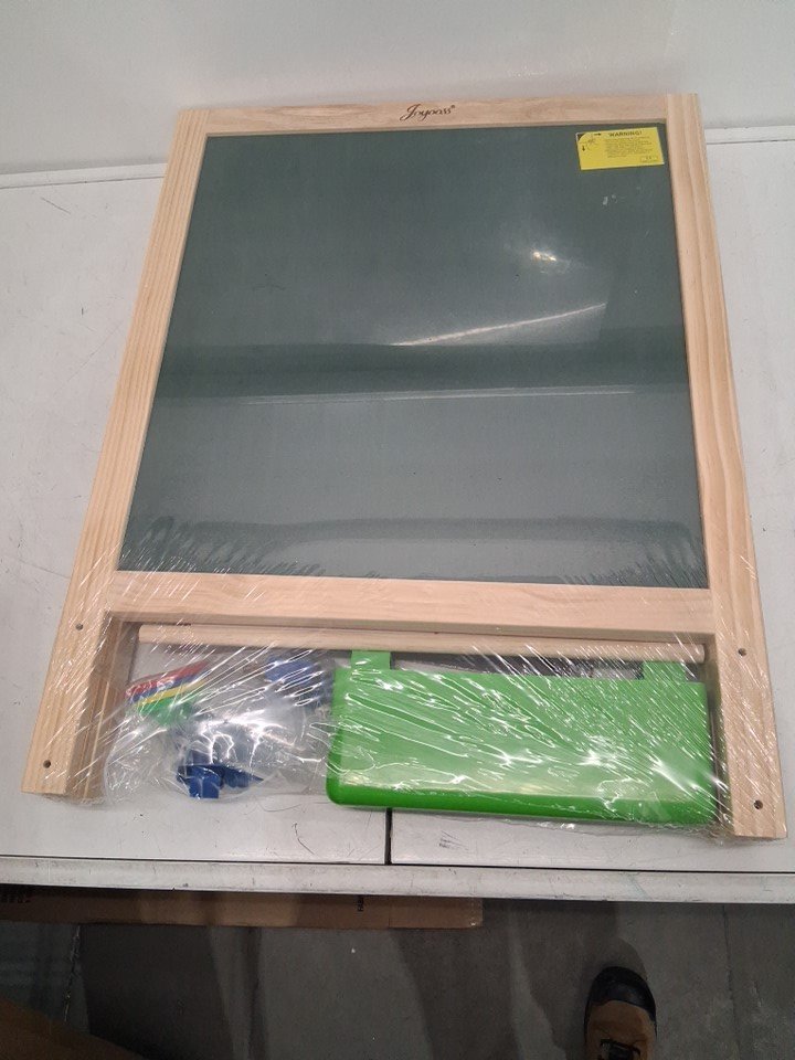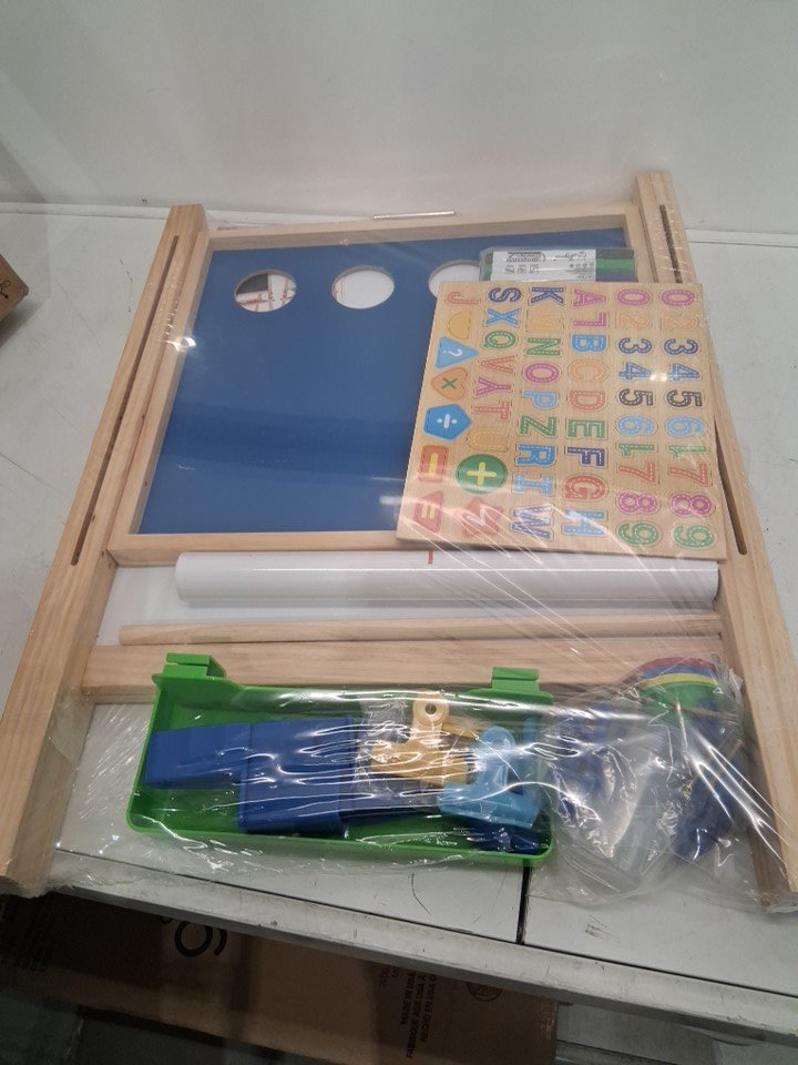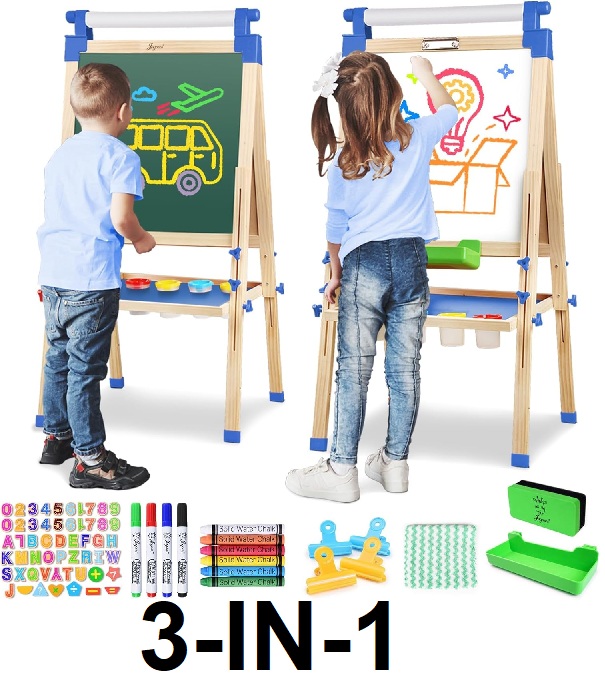 joyooss kids 3-in-1 Wooden double sided Chalkboard/Magnetic Dry Erase Board Art Easel with Bonus Art Supplies - blue/natural (Model: joy126-b)