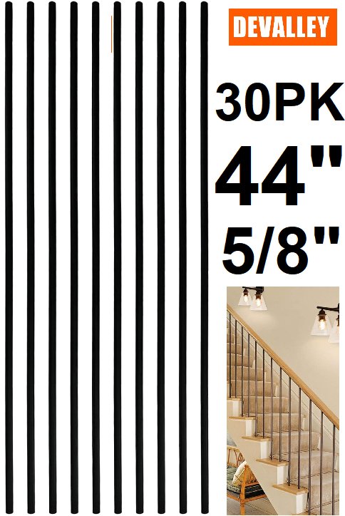 30PK DEVALLEY straight round Iron Balusters for Staircase Stair Spindles - 44" x 5/8" round - matte black