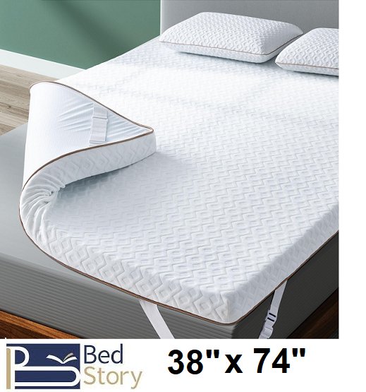 Bed Story Gel memory foam Mattress topper with pressure relief - Twin/ 38" x 74" - white with brown trim