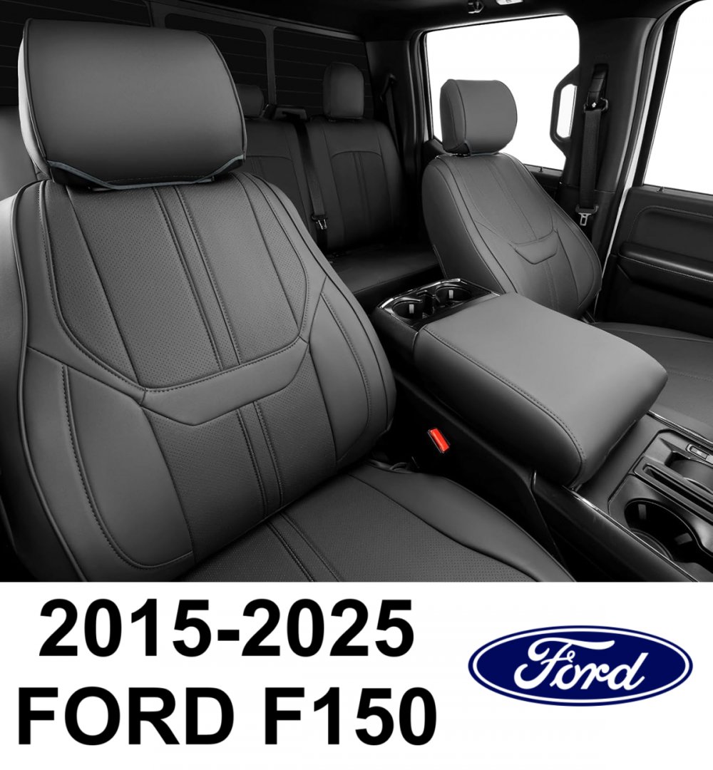 14PC Super Cover Full Covered Leather Waterproof Seat Covers for 2015-2025 Ford F150 - Black