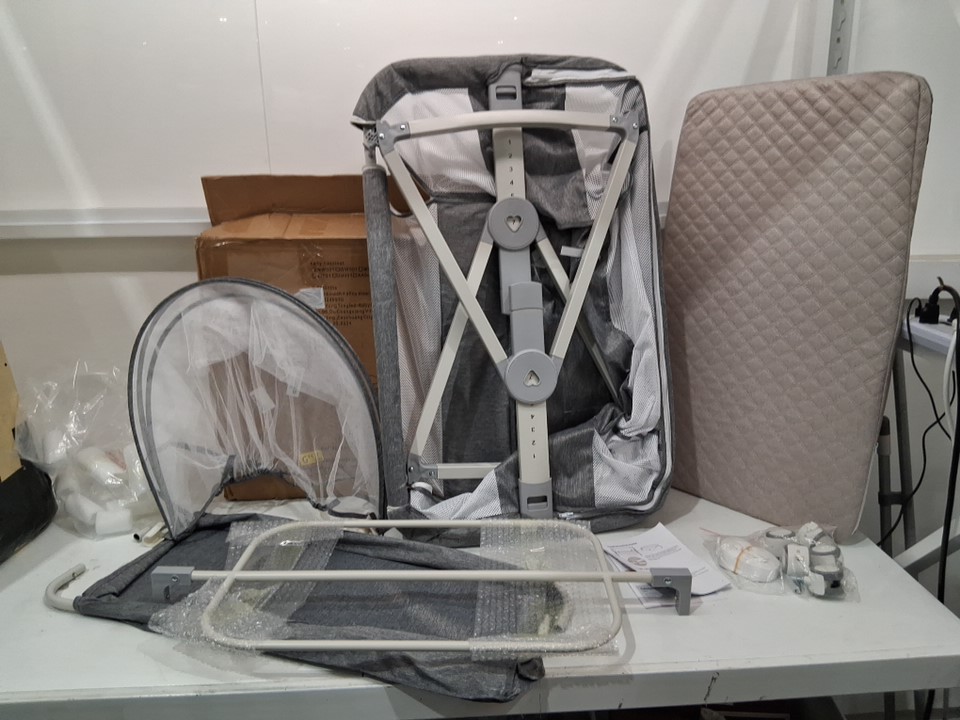 Youluzhen 3-IN-1 Baby Bassinet Bedside Sleeper with Wheels and Mattress - 0-5M - GREY/BIEGE (MODEL: M001)