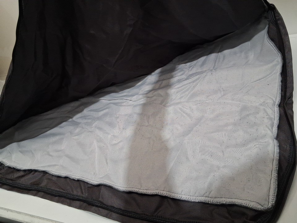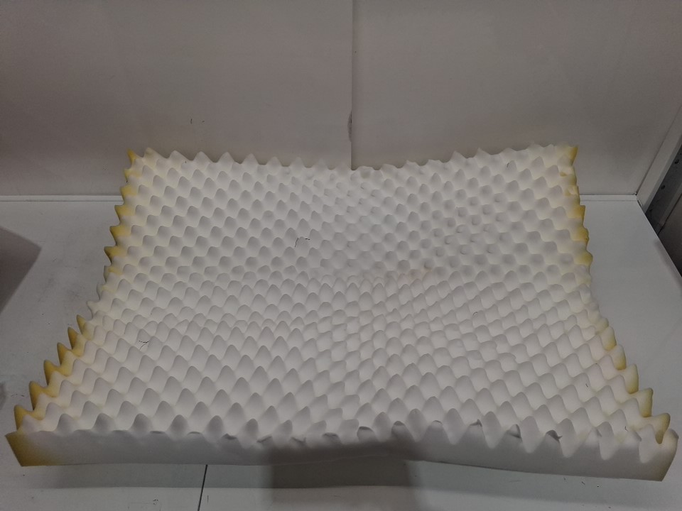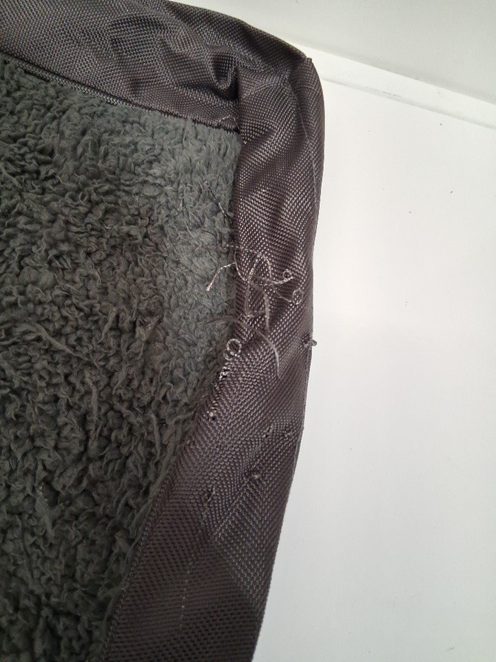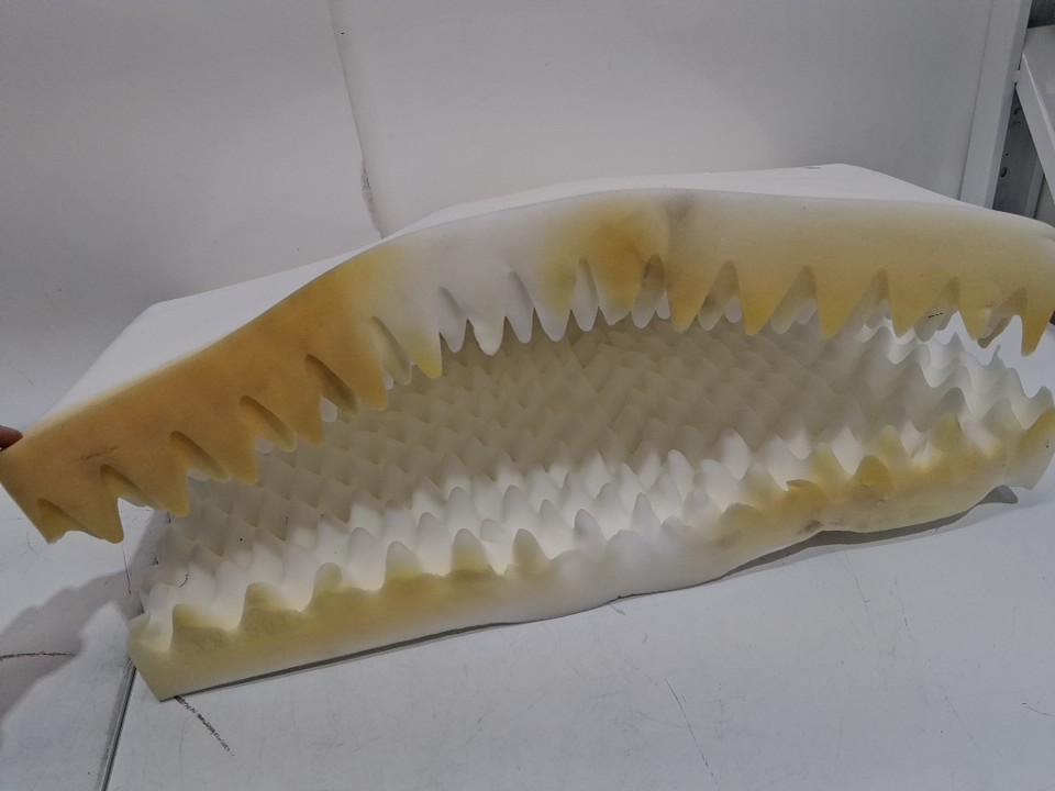 yellow staining from shipping on memory foam, some threading on cover from previous use. see photos