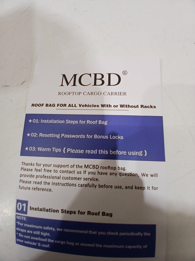 MCBD WEATHER-RESISTANT VEHICLE ROOFTOP CARGO CARRIER, 26 CUBIC FEET - BLACK/GREY