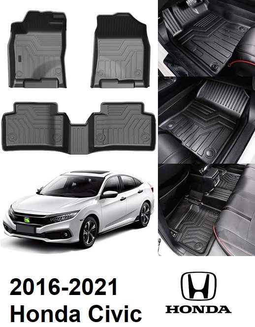 KUST all weather 2 Row Front & Rear Liner/Floor Mats - for 2016-2021 Honda Civic - black