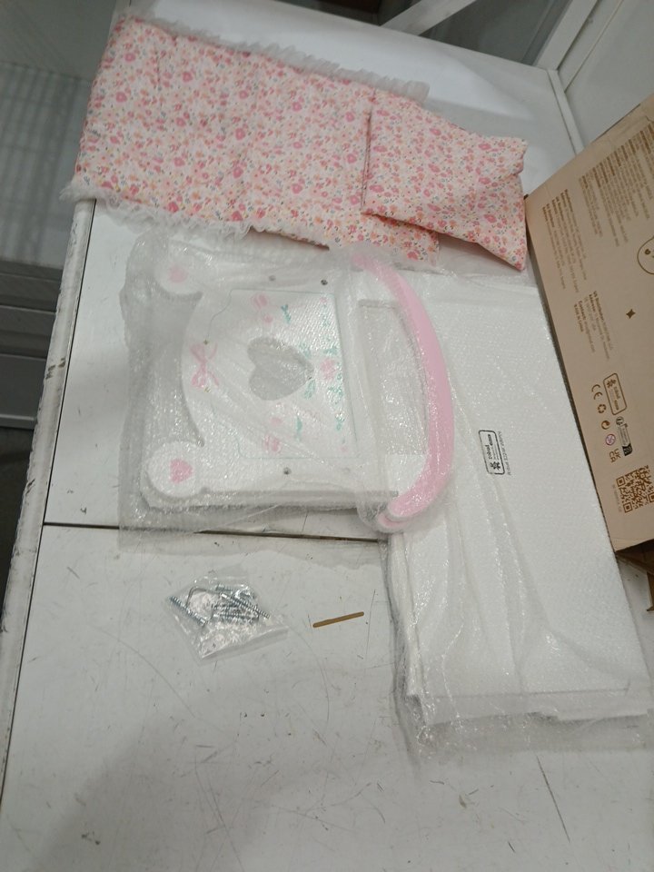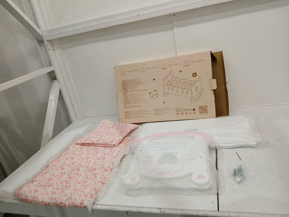 ROBOTIME Baby Doll Crib Cradle with Pink Pad, Blanket, and Pillow, FOR 18" DOLLS - WHITE PINK (MODEL:WRP06)