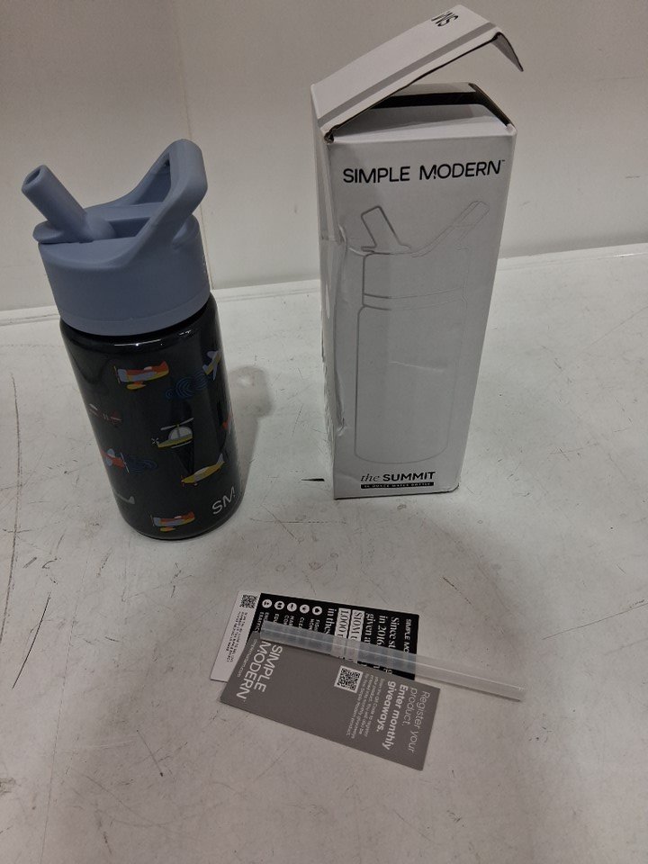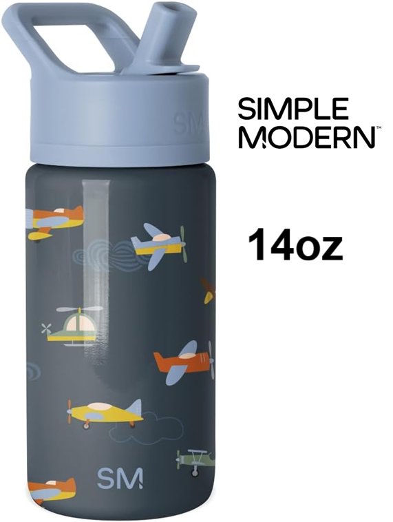 Kids simple modern the summit pop up top water bottle - 14oz - airplanes/blue - (model:sm2-s-14-wu-m)