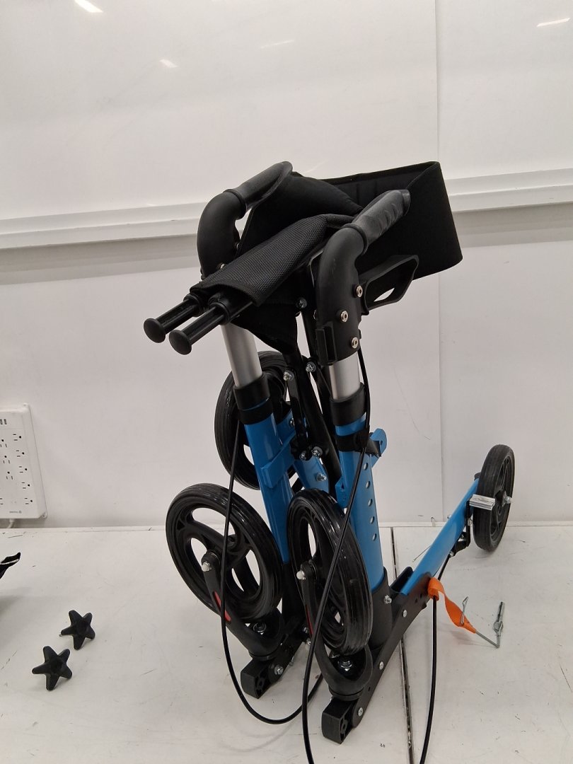 OKSTENCK ROLLATOR WALKER FOR SEINORS, FOLDABLE WITH SEAT FOR EASY TRANSPORTATION, 8" RESISTANT WHEELS AND ADJUSTABLE HEIGHT SETTINGS, BLUE/BLACK,(MODEL:PJ70101)
