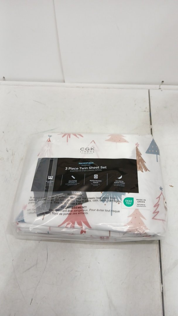 3pc cgk linens holiday christmas tree sheet set - twin - white/trees
