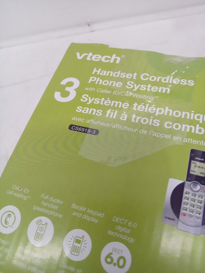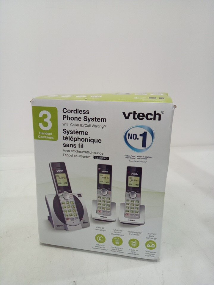 VTECH 3-HANDSET CORDLESS PHONES WITH CALLER ID/CALL WAITING - SILVER/BLACK (MODEL: CS6919-3)