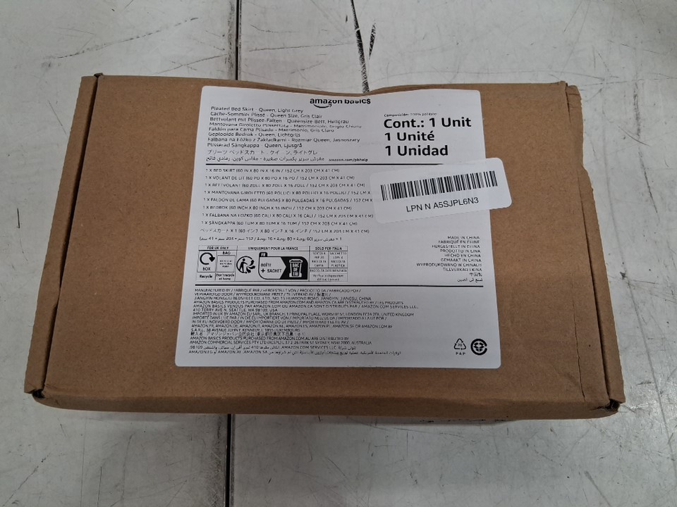 AMAZONBASICS Lightweight Pleated Bed Skirt - QUEEN 16" DRAPE - Light Grey