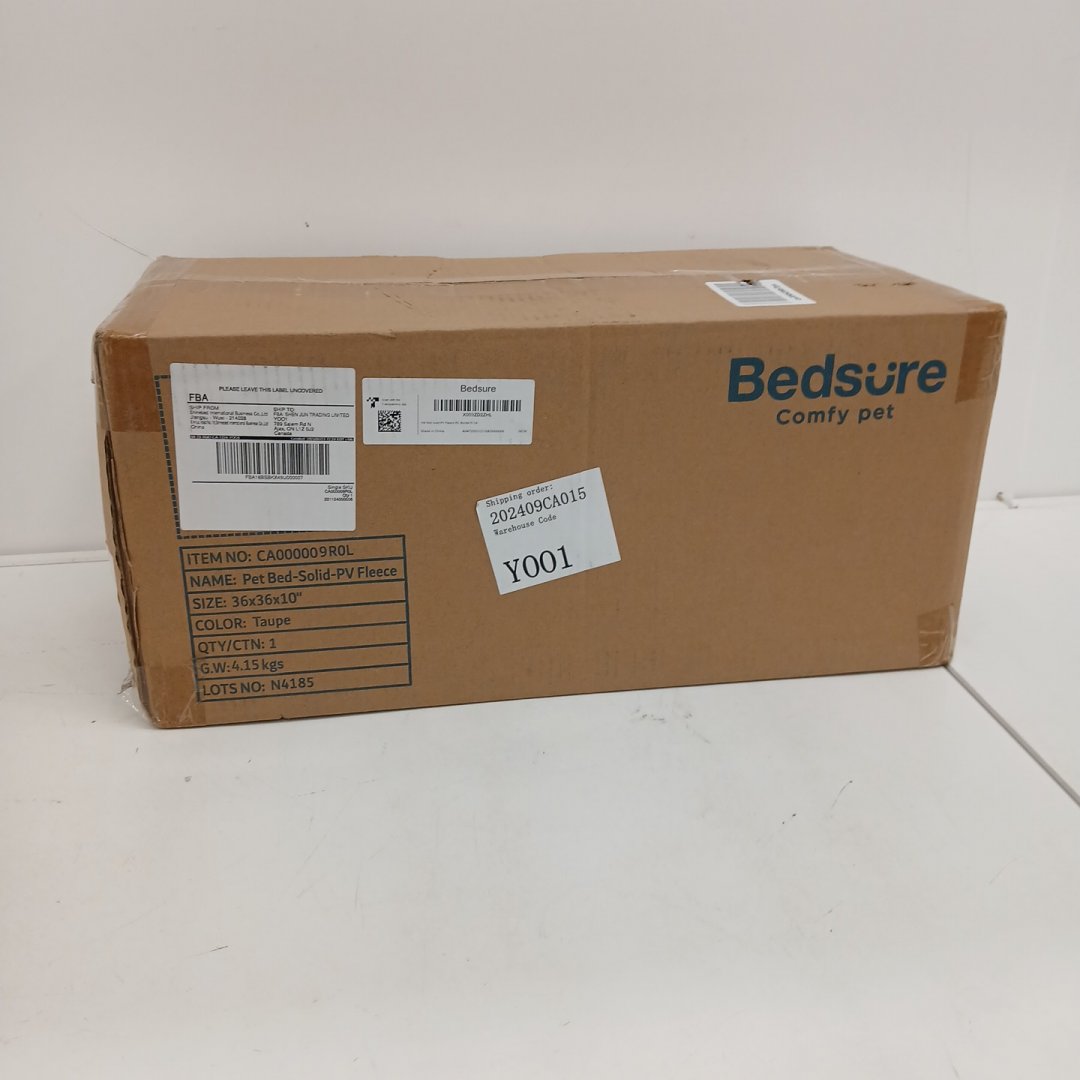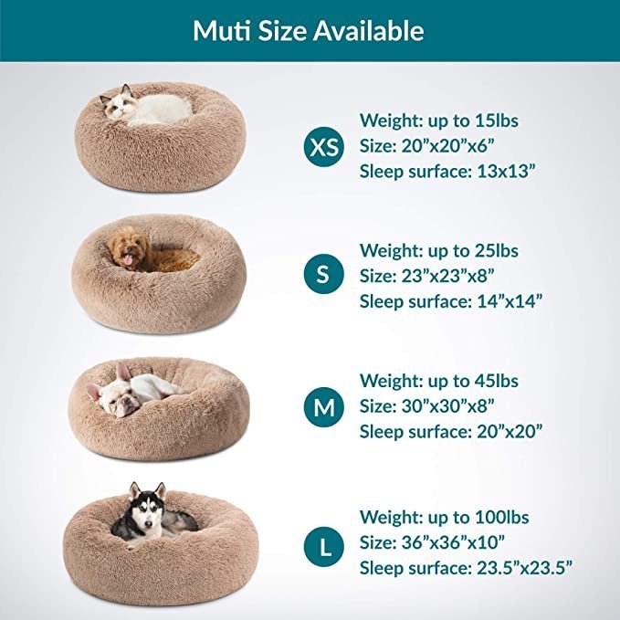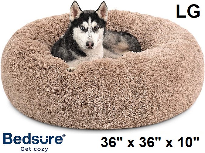 BEDSURE PLUSH ROUND CALMING FAUX FUR DONUT CUDDLER PET DOG/CAT BED - LARGE / 36" x 36" x 10" - TAUPE