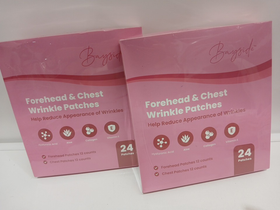 2 (24PK) Bayside Forehead & Chest Wrinkle Patches Set - Hyaluronic Acid Aloe Collagen Vitamin E
