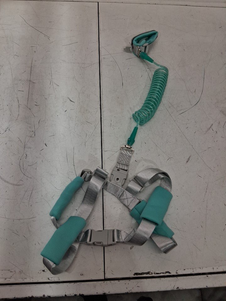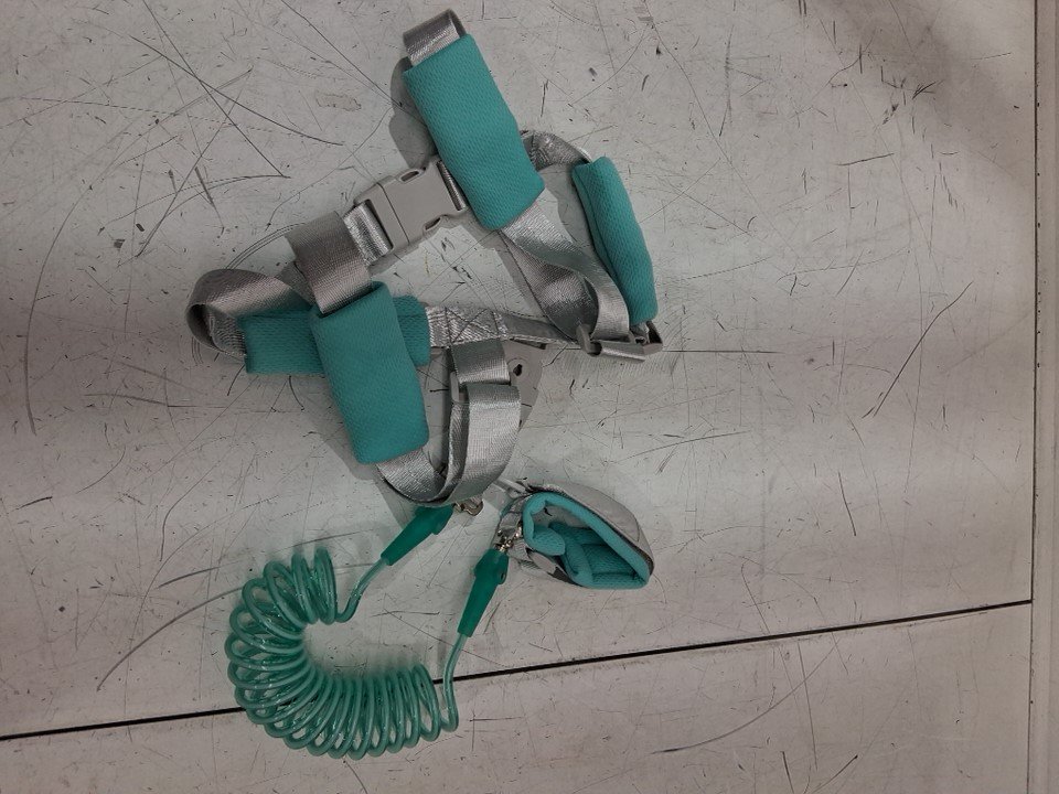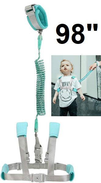 kids backpack leash with wrist strap - 98" - grey/turquoise