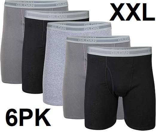 6pk Men's Gildan regular leg boxer briefs - XXL - Black/grey