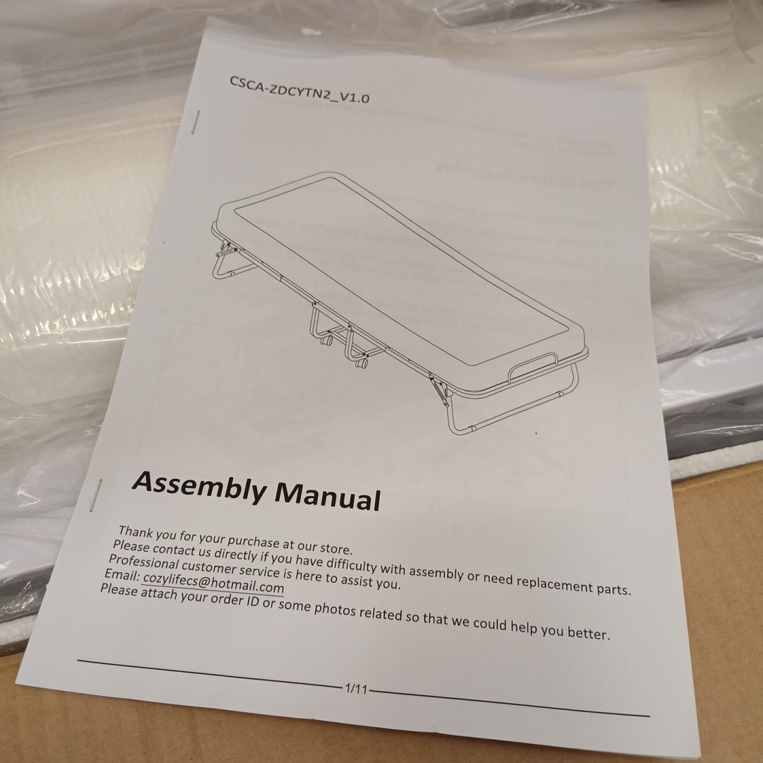 COZYLIFE FOLDING SINGLE SLEEPER COT WITH METAL FRAME - WHITE (MODEL: ZDCYTN2 V1.0)