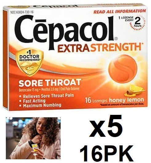 5 (16pk) Cepacol Sore Throat Oral Pain Relieving Lozenges (64 total) - Extra Strength - Honey Lemon
