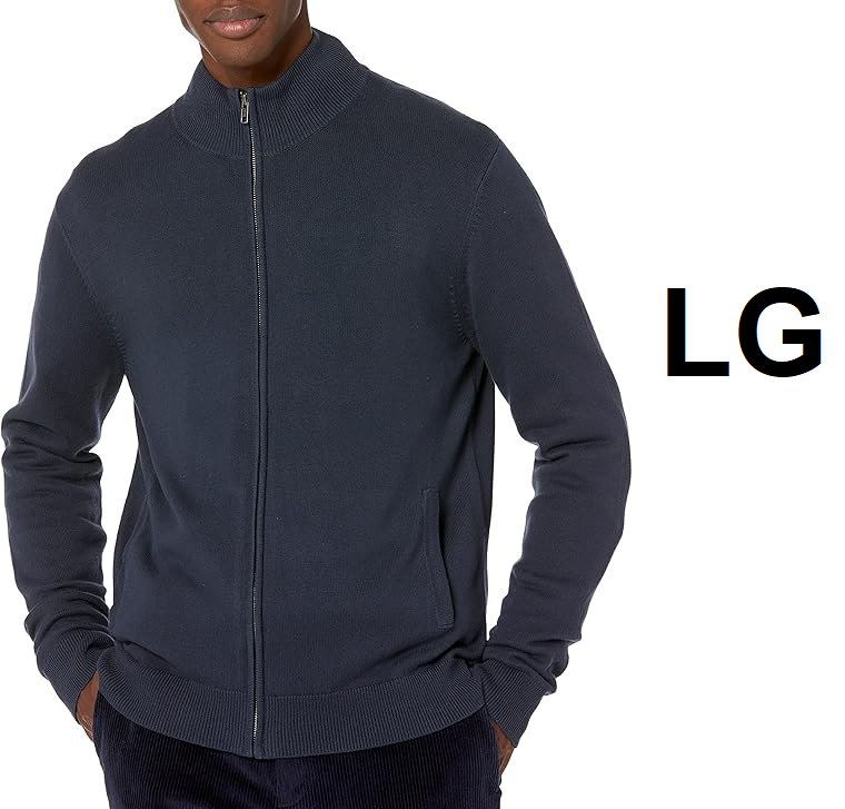 MEN'S AMAZON ESSENTIALS COTTON REGULAR FIT FULL ZIP UP SWEATER- LARGE - NAVY BLUE (MODEL:AE1898286)