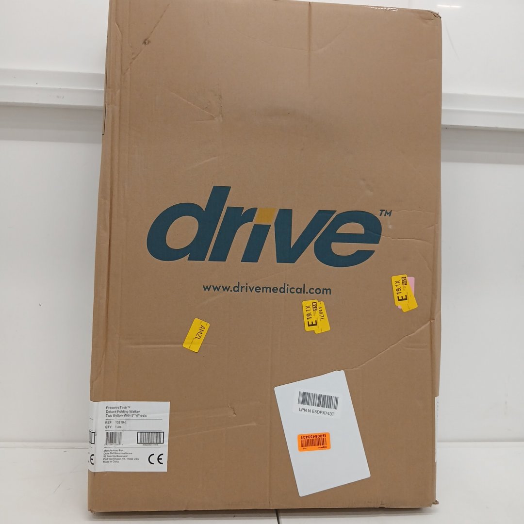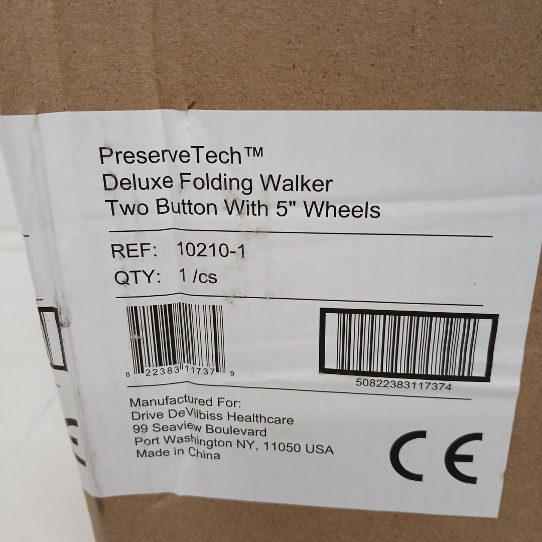 Drive Medical preservetech Deluxe Two Button Folding Walker with 5" Wheels - SILVER - (MODEL: 10210-1)