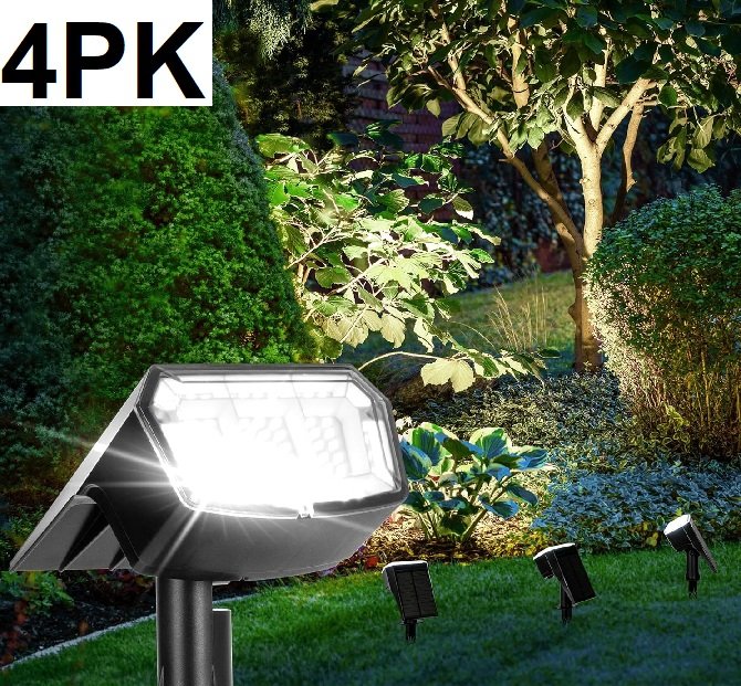 4pk auderwin outdoor waterproof solar spot lights - 3 light settings - cool white