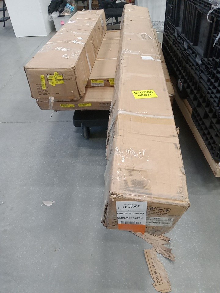 *This item comes in 6 boxes* a large vehicle will be needed in order to pick up this item. 4/6 of the boxes are sealed, while 2/6 of the boxes are open with contents inside appearing to be brand new. we are unable to do a piece count as some boxes are sealed and some are open contents new, however it does seem that all vital pieces for assembly are present due to the brand new condition. see photos below.