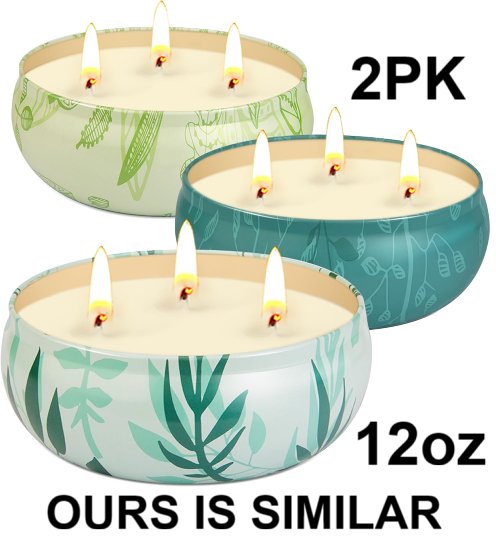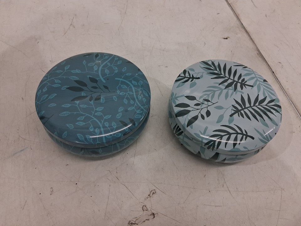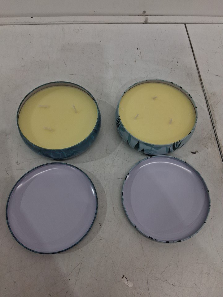 2PK CITRONELLA CANDLE TINS - 12oz - leaves/blue
