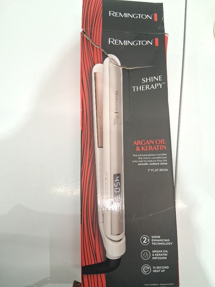 REMINGTON SHINE THERAPY FLAT HAIR STRAIGHTENER IRON INFUSED WITH ARGAN OIL & KERATIN - 1"- WHITE (MODEL: S9511)
