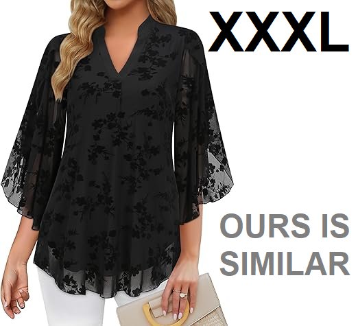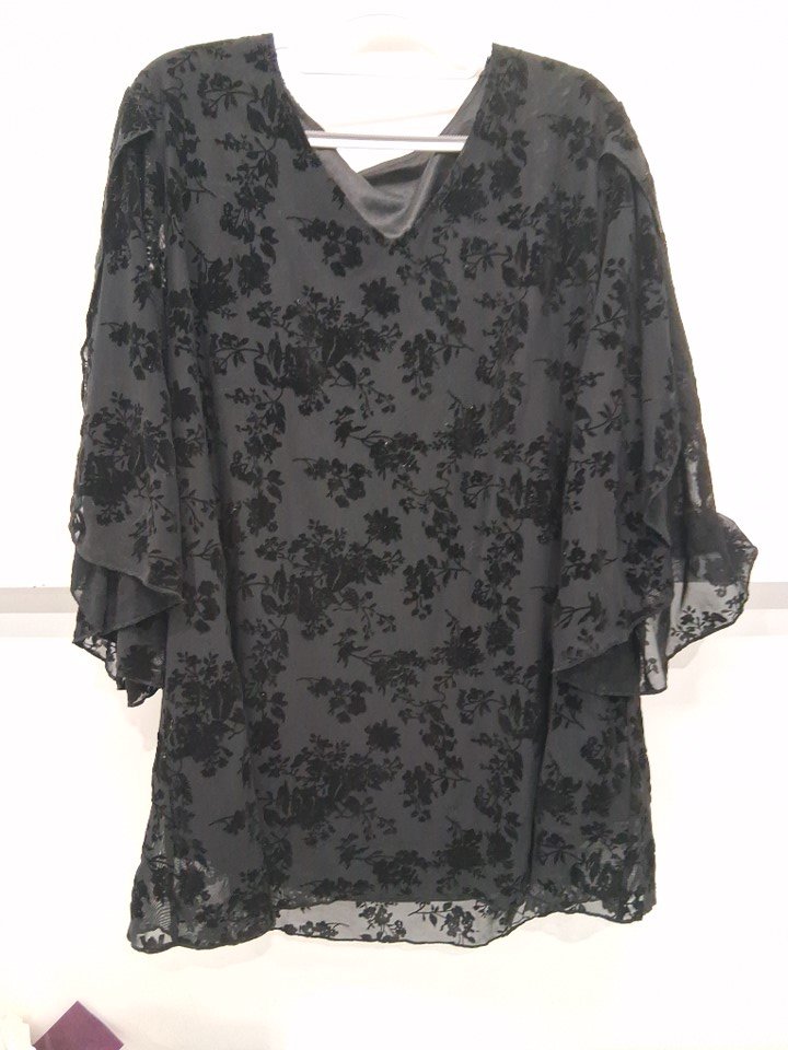 Women's Flikity evening top ruffle split sleeve v neck blouse - XXXL - Black