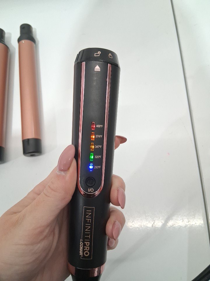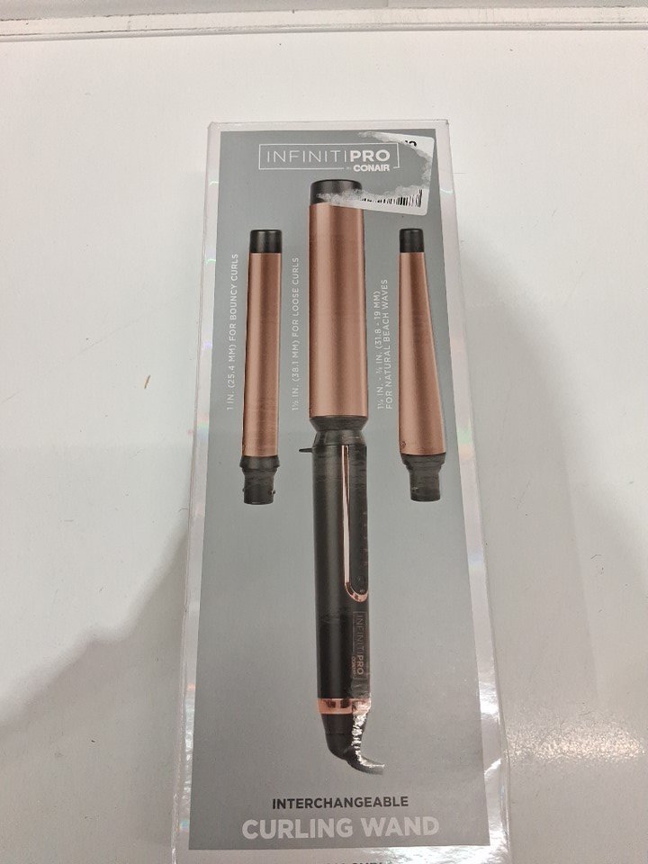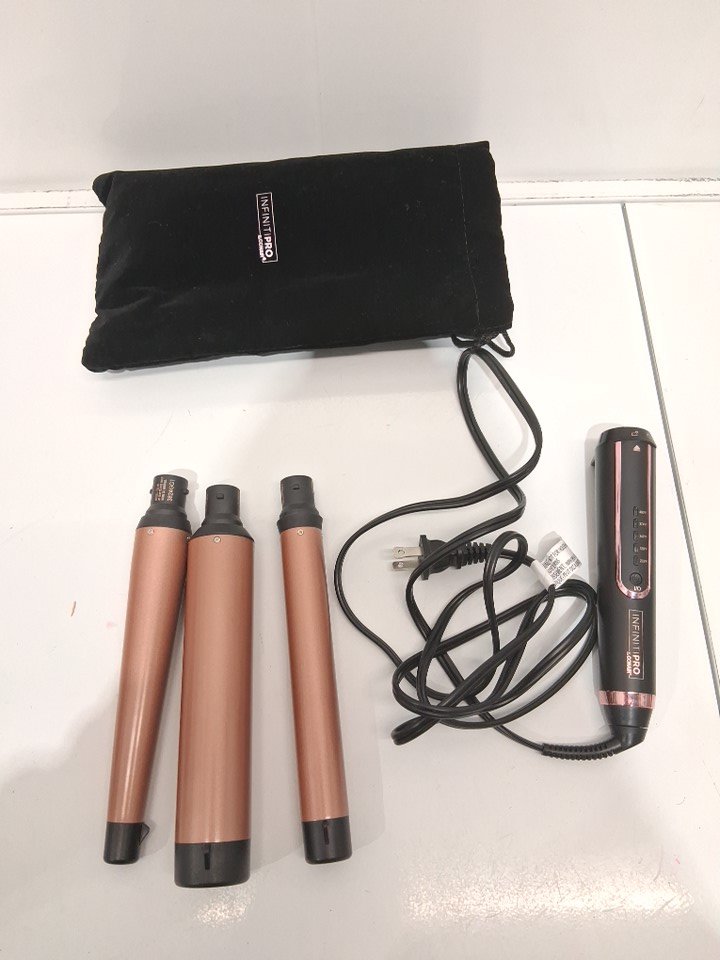 5PC INFINITIPRO BY CONAIR 3-BARREL INTERCHANGEABLE HAIR CURLING WAND WITH TRAVEL POUCH - 1", 1-1/4", 1-1/2" BARRELS - ROSE GOLD (MODEL: CB700nc)
