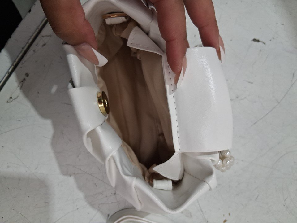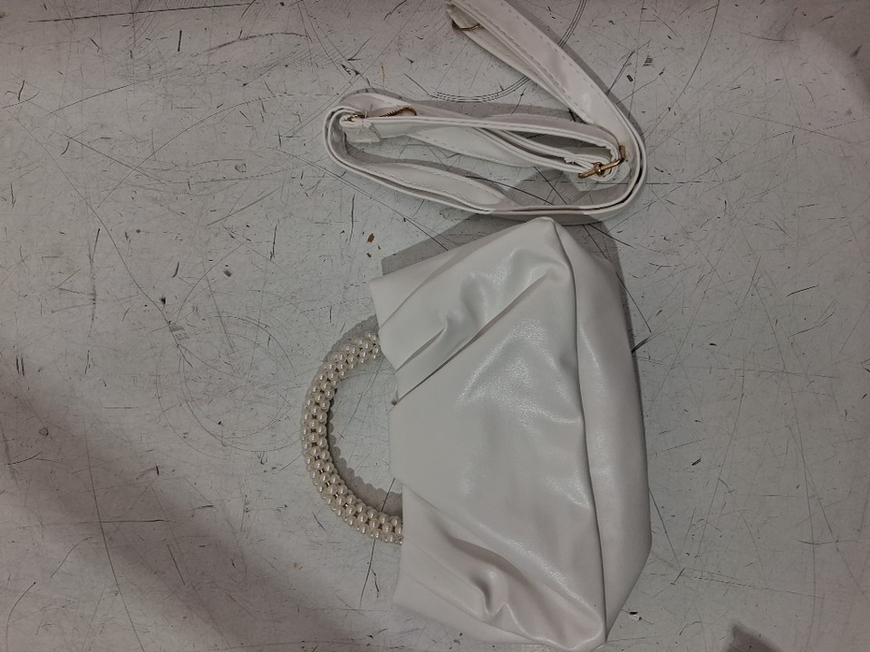 womens faux leather clutch with shoulder strap - 8" x 4" - white/pearl