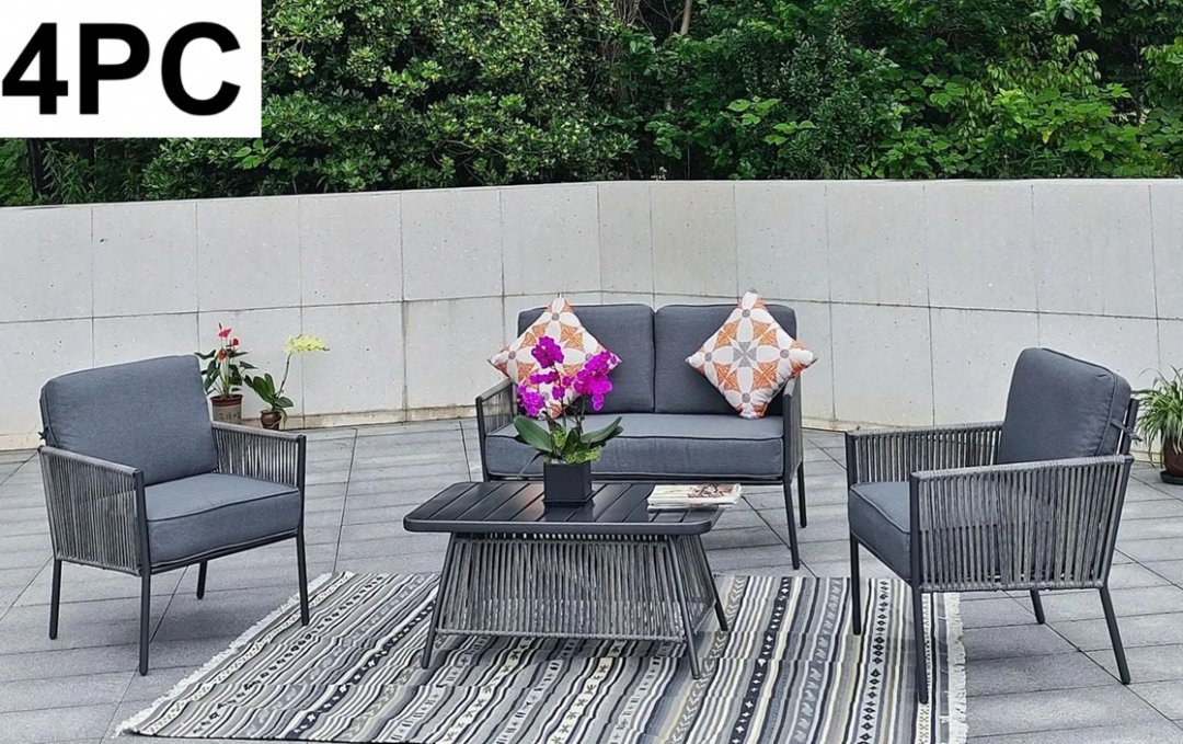 4pc patio conversation set - 27" x 30" x 31"(chair), 50" x 30" x 31"(loveseat), 40" x 22" x 18"(table) - grey - (model: 50696172)