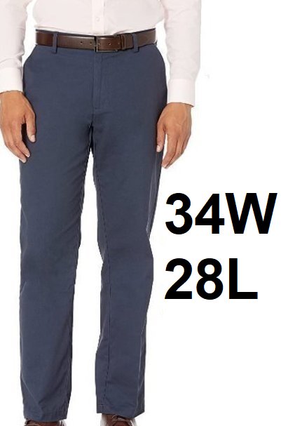 MEN'S AMAZON ESSENTIALS CLASSIC FIT FLAT FRONT CHINO PANTS - 34W x 28L - NAVY BLUE
