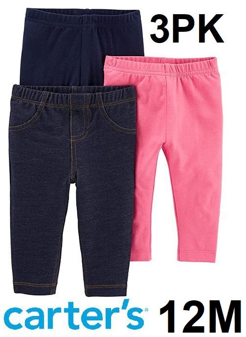 3PK INFANT GIRL'S CARTER'S SIMPLE JOYS LEGGINGS- 12m - NAVY/PINK/DENIM