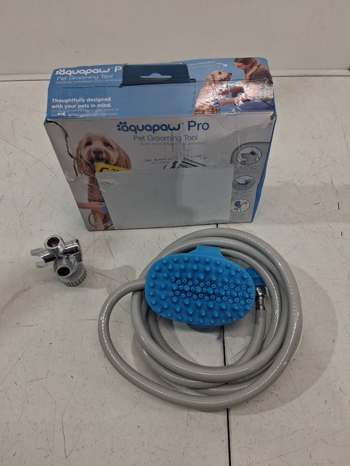 AQUAPAW PRO PET Grooming TOOL 2-IN-1 SPRAYER/SCRUBBER - 8FT HOSE - Blue/Grey