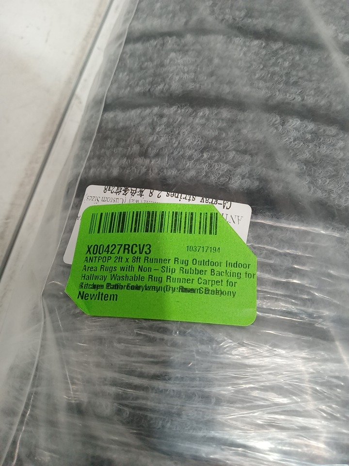 antpop non-slip low pile indoor/outdoor runner rug carpet - 2ft x 8ft - grey stripe