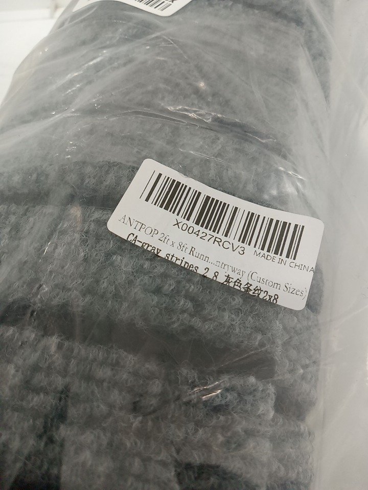 antpop non-slip low pile indoor/outdoor runner rug carpet - 2ft x 8ft - grey stripe