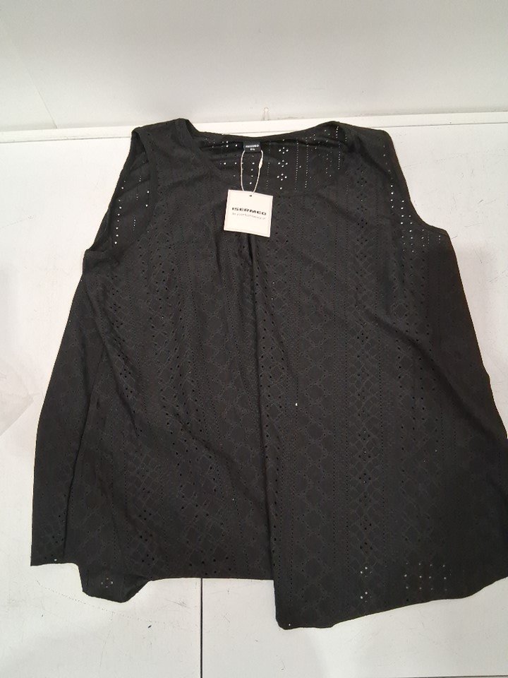 WOMENS ISERMEO TANK TOP SLEEVELESS SHIRT WITH FLORAL DESIGN - 2XL - BLACK
