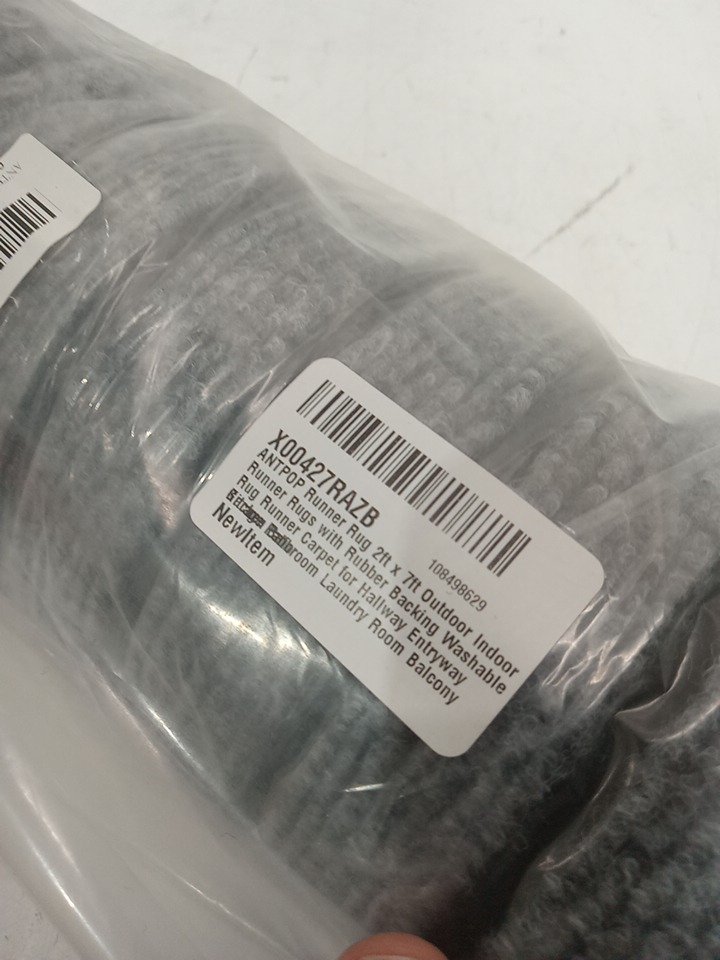 ANTPOP non-slip low pile indoor/outdoor runner rug carpet - 2ft x 7ft - grey stripe