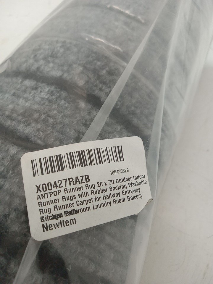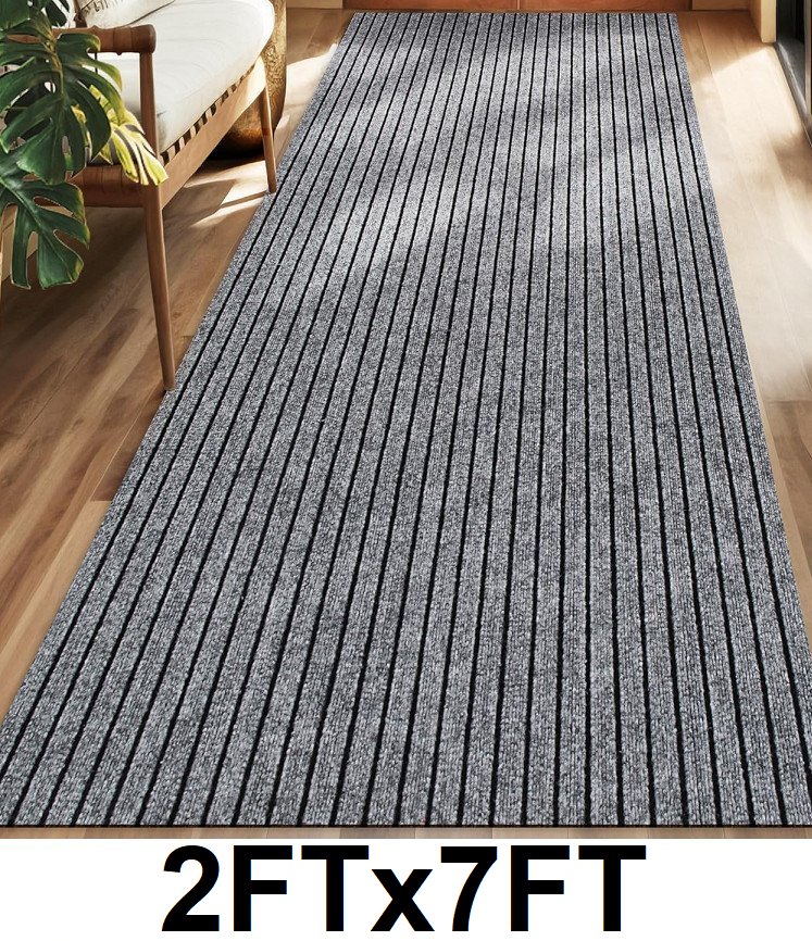 ANTPOP non-slip low pile indoor/outdoor runner rug carpet - 2ft x 7ft - grey stripe