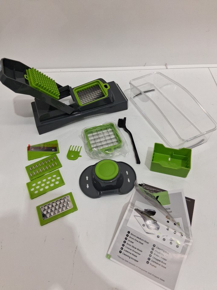 RüK 10-in-1 6 Blade Vegetable Chopper with Container - GREY/GREEN