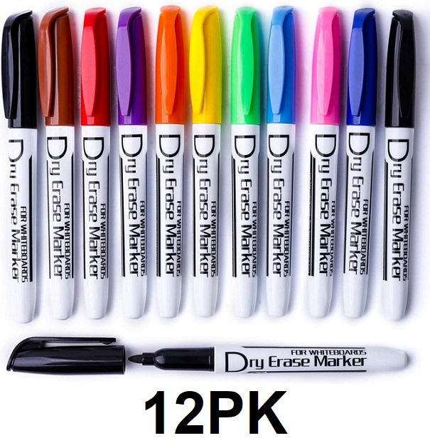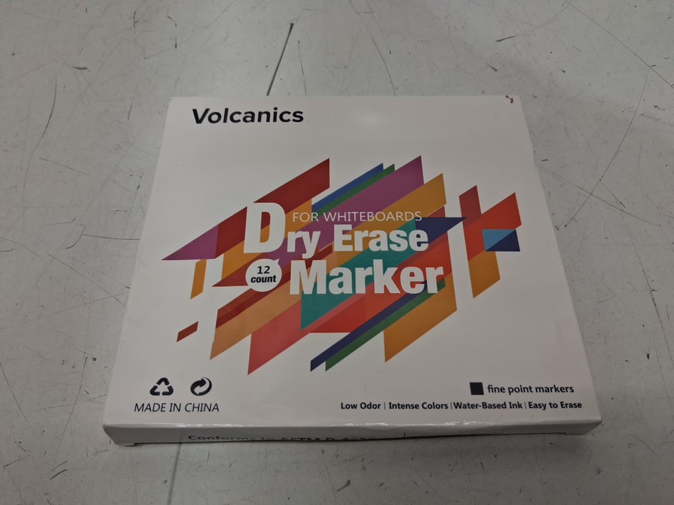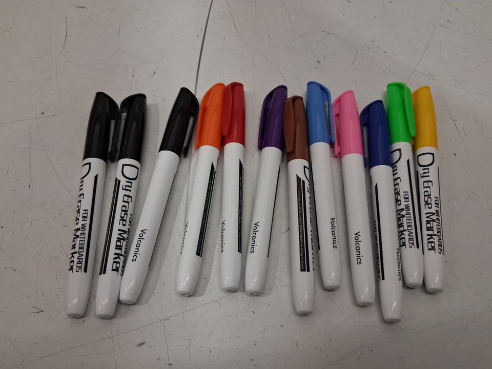 12PK VOLCANICS LOW ODOR non toxic DRY ERASE WHITEBOARD MARKERS - fine point - ASSORTED COLOURS